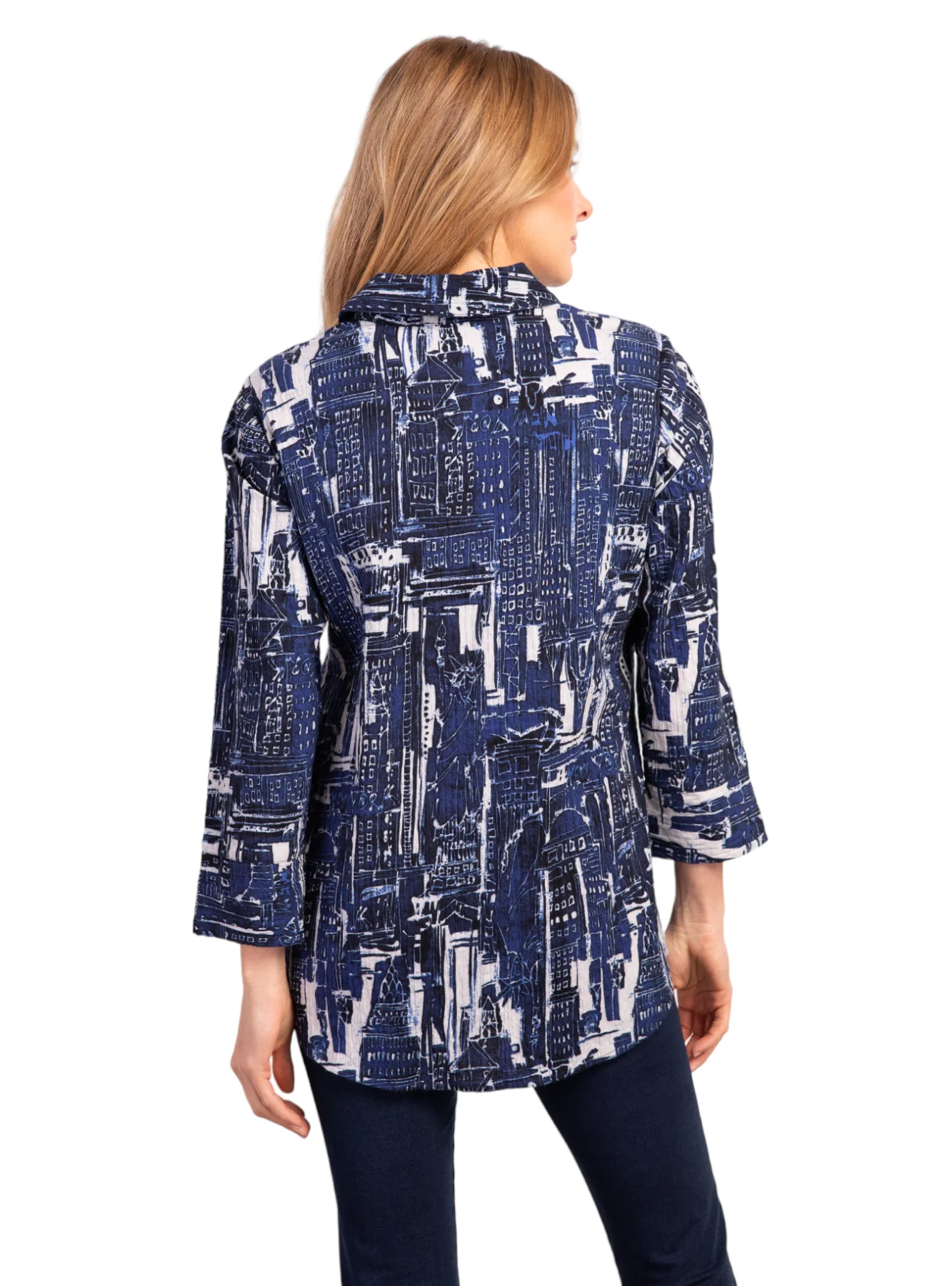 The Real Wool Shop in Carleton Place has a great selection of women's fashions! This shirt is a classic collared shirt designed with a flattering fit and funky design. It's has 3/4 length sleeves and features a button front closure. Upgrade your wardrobe with this timeless and elegant staple!