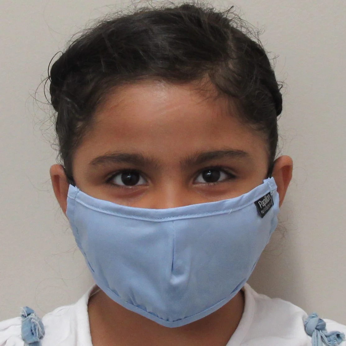 Cotton mask with a pocket for filter and adjustable straps.